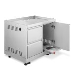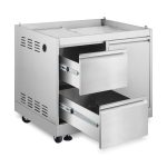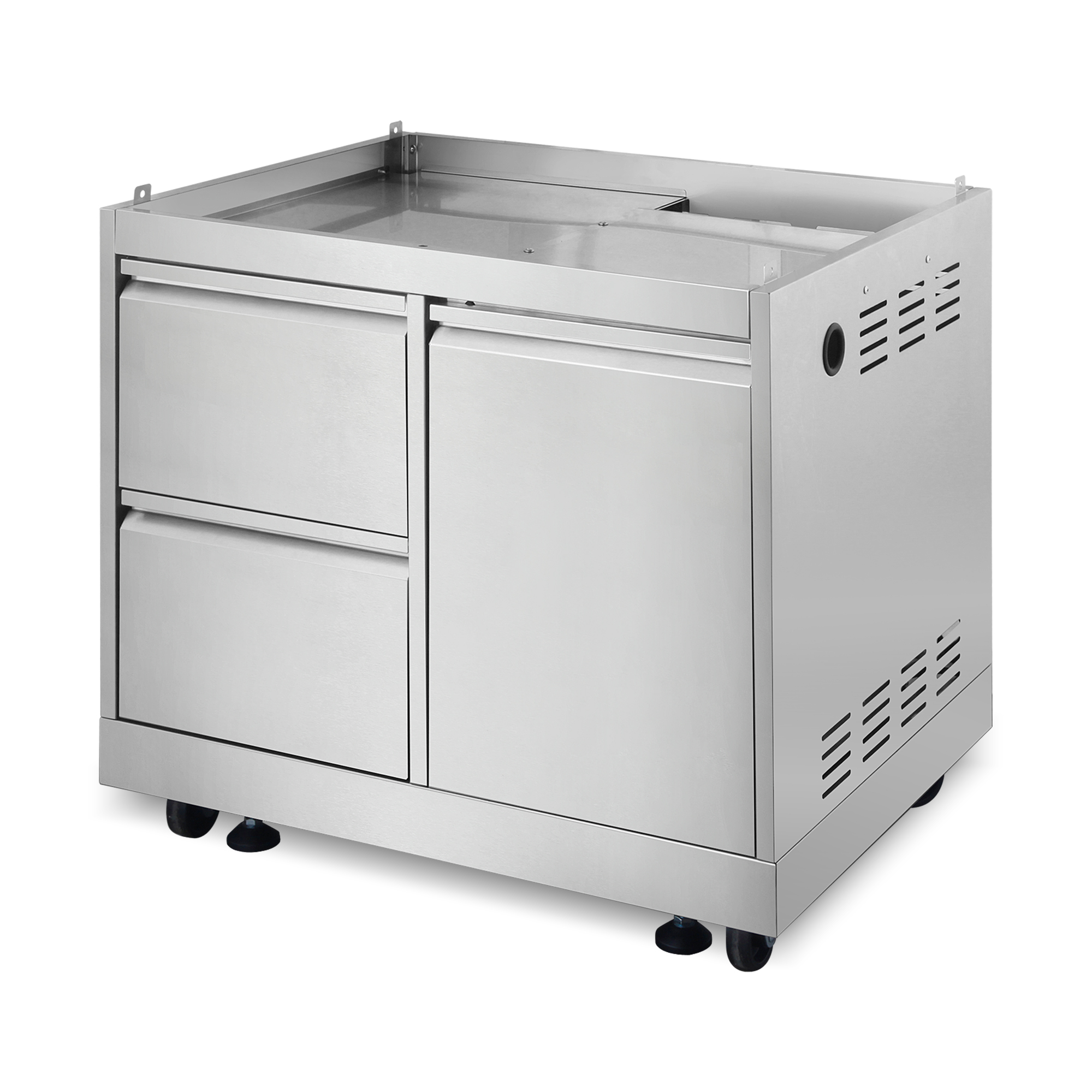 Take your outdoor cooking space to the next level with the Cosmo COS-GCN323SS Grill Cabinet. This stainless steel cabinet is built to handle the rigors of outdoors with a premium stainless steel frame and a weather-resistant finish. It offers practical storage with two pull-out drawers and a dedicated cabinet for a propane tank, complete with a secure mounting bracket. Soft-roll casters allow you to easily reposition the cabinet as needed with two brakes. Designed to pair with the Cosmo COS-BGGN325K Gas Grill (sold separately), it creates a seamless outdoor cooking station. Part of the Cosmo Newport Collection, this grill cabinet delivers advanced technology and luxurious designs, offering a premium experience with top-tier performance and sophisticated aesthetics for those seeking the best in every detail.